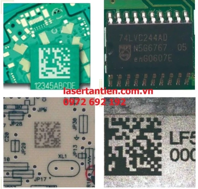 - Trong ngành điện tử, khắc lên linh kiện, PCB, điện thoại, macbook, máy tính bảng,…